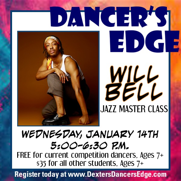 We have some incredible master classes coming up! Will Bell is guest teaching at The University of Michigan School of Music, Theater, and Dance and will be stopping by to teach at Dancer's Edge! You can find more information about Will's background HERE!