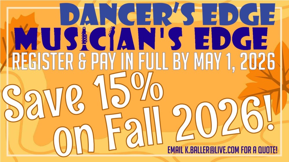 Any registrations for Fall 2026 classes before May 1st will receive a 15% discount!