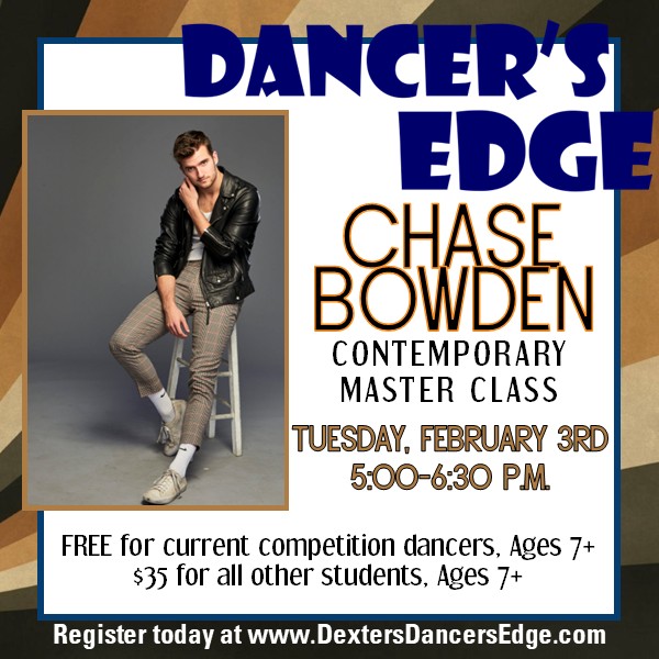 We have some incredible master classes coming up! Chase Bowen is guest teaching at The University of Michigan School of Music, Theater, and Dance and will be stopping by to teach at Dancer's Edge! You can find more information about Chase's background HERE!