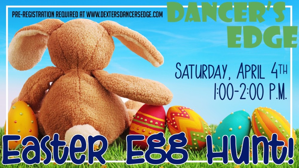 We are excited to be hosting our annual Easter Egg Hunt this April! Come have a fun afternoon at Dancer's Edge! $5.00 Dollar donation suggested at registration. This event will be available for the public.