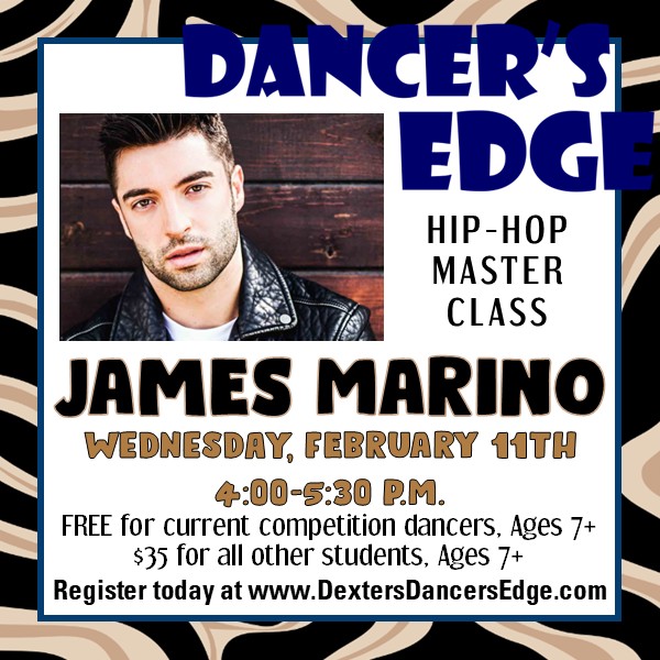 We have some incredible master classes coming up! James Marino is guest teaching at The University of Michigan School of Music, Theater, and Dance and will be stopping by to teach at Dancer's Edge! You can find more information about James' background HERE!