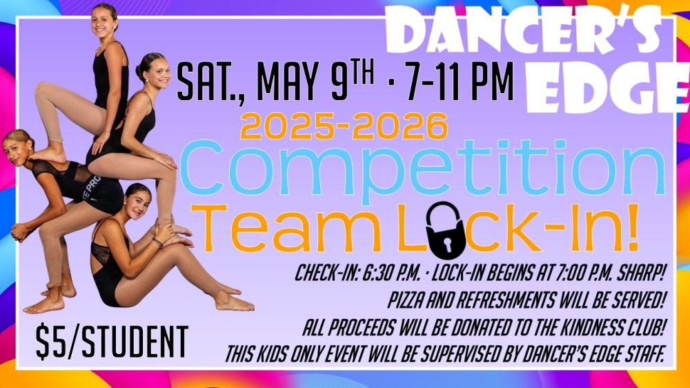 Dancer's Edge Competition Team Lock-In (May 9, 2026 - 7:00 - 11:00 P.M.)